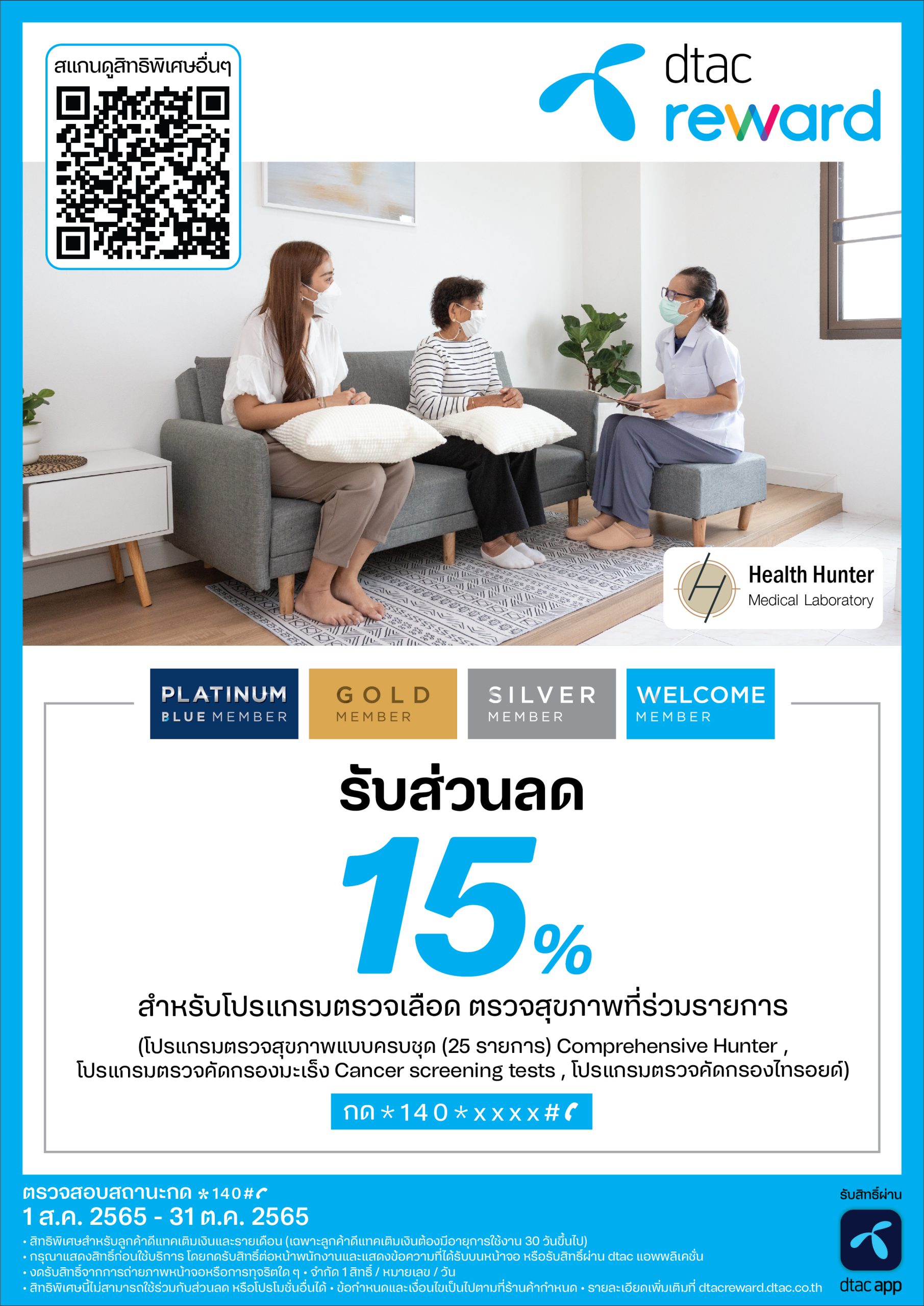 รับส่วนลด 15% สำหรับโปรแกรมตรวจเลือด ตรวจสุขภาพที่ร่วมรายการ